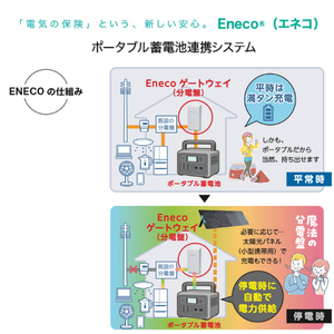 Enecoは「電気の保険」みたいなもの。ポータブル蓄電池を分電盤に簡単・安全に連携することが可能です。天井照明がそのまま使えるフェーズフリー型で日常から非常時まで使える合理的な備えができます。