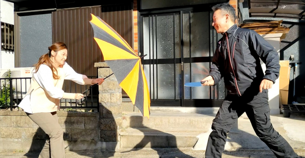 数多くの公共施設などに採用頂いている防刃傘です。さすまたのように目立たず保管できる為、商業施設やイベントなどにも。かなり実績が増えています。レンタルやサブスクも対応可能です。また、完全オリジナルフレームの強化版も開発中で展示予定です。
