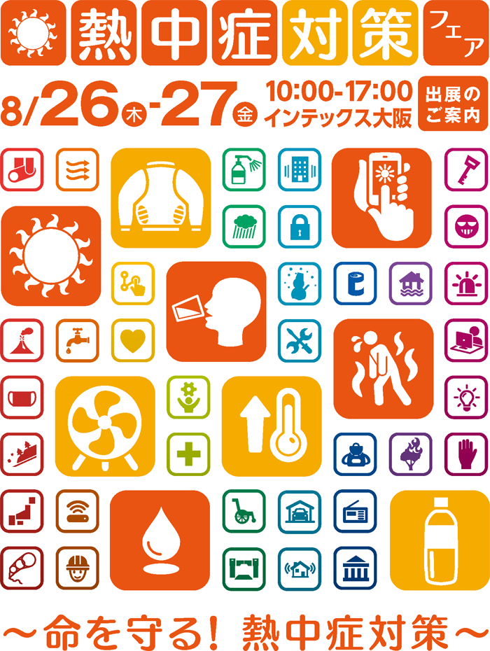 「熱中症対策フェア」では“命を守る! 熱中症対策”をキーワードに、あらゆる業界の関係者へ情報発信を行います。