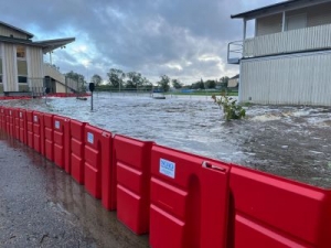 ★土嚢に代わる堰止高さ1m対応の止水板。持ち運びが簡単、並べるだけで土嚢高さ1m分の働きをします。